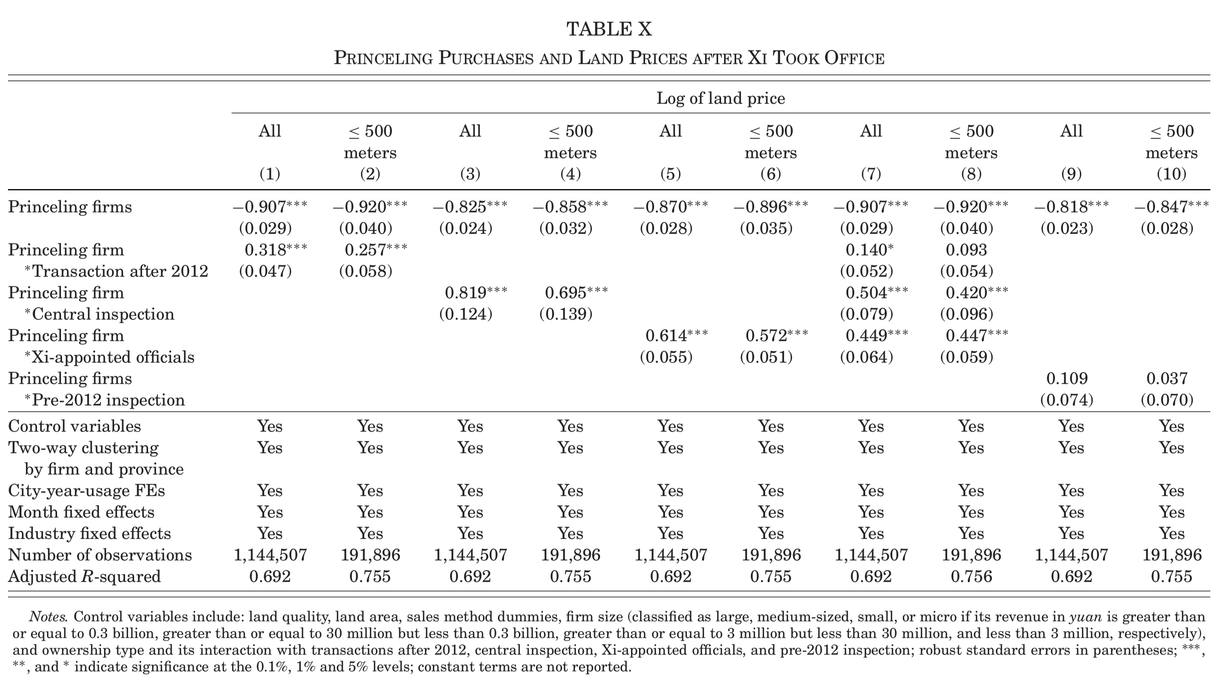 Table X显示了反腐运动对“高层政治关联”公司获得价格折扣降低的作用效果: